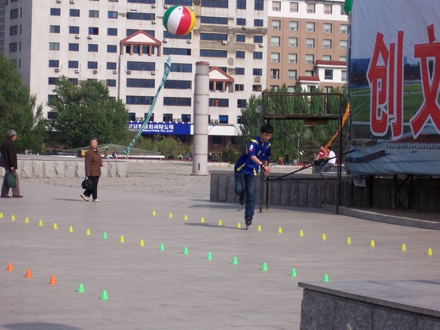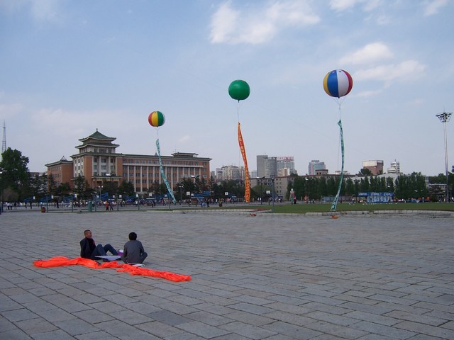 Großer Platz vor dem Geologischen Museum. Man vertreibt sich die Zeit mit Basketball, Drachen steigen lassen. Ein Konzert wird vorbereitet für den Abend ...