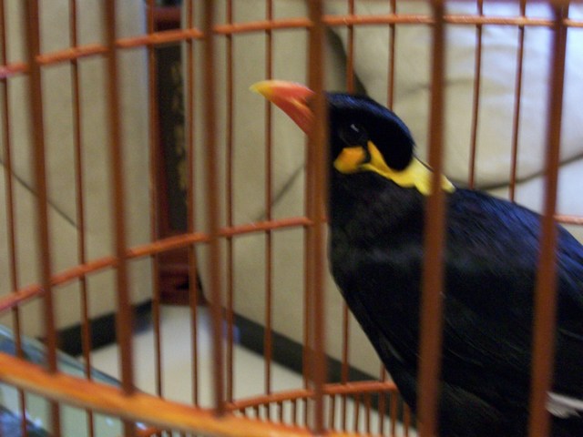 dem sprechenden gefiederten Freund im Käfig