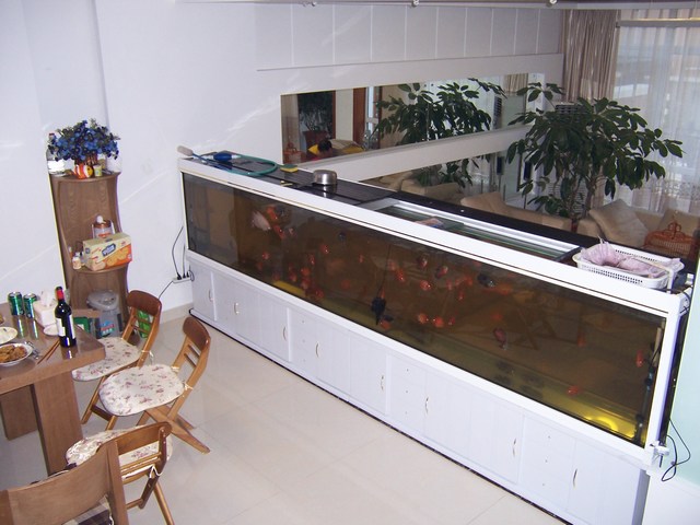 Wohnzimmer mit riesigem Aquariu